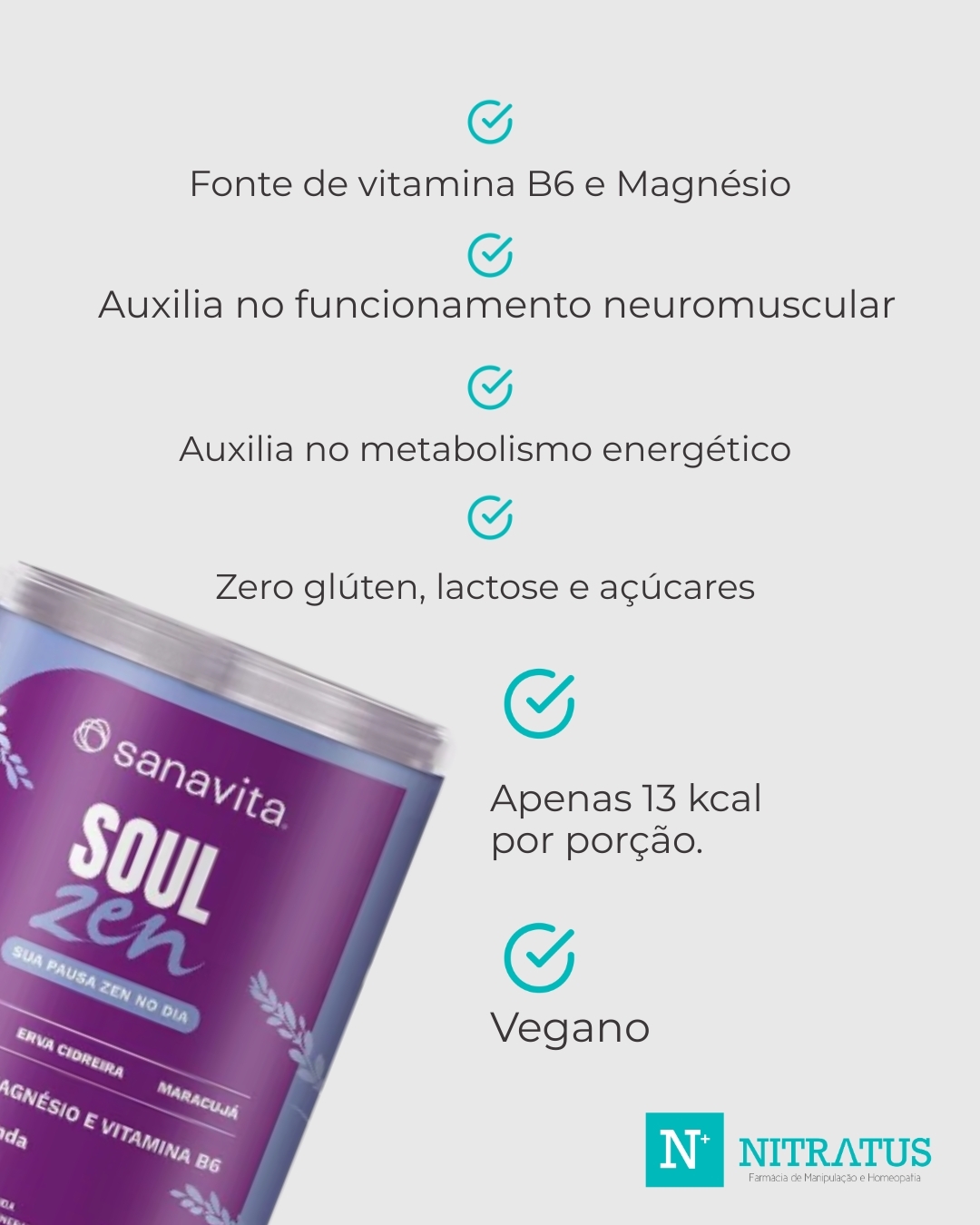 Soul Zen 125g Início (0) Dê sua opinião sobre este produto R$ 100,00 2x de R$ 50,00 - + Soul Zen é uma bebida que combina de forma única, um blend especial de ingredientes tradicionalmente usados no preparo de chás relaxantes, como a camomila, erva cidreira e o maracujá, harmonizados com notas suaves de lavanda e capim limão, resultando em uma combinação equilibrada e aromática. O magnésio e a vitamina B6, nutrientes importantes para o equilíbrio e bem-estar do organismo, complementam o propósito de Soul Zen, um convite delicioso para desacelerar e aproveitar o dia com leveza. Relaxe e curta essa experiência! Consulte o prazo de entrega e frete do pedido Carregando... Quantas estrelas este produto merece? Escolha uma estrela abaixo. Quanto mais estrelas, mais você gostou! Ajude pessoas que têm dúvidas a entenderem se este produto é bom. Sua opinião aparecerá para várias pessoas que buscam informações na hora da compra Enviando...